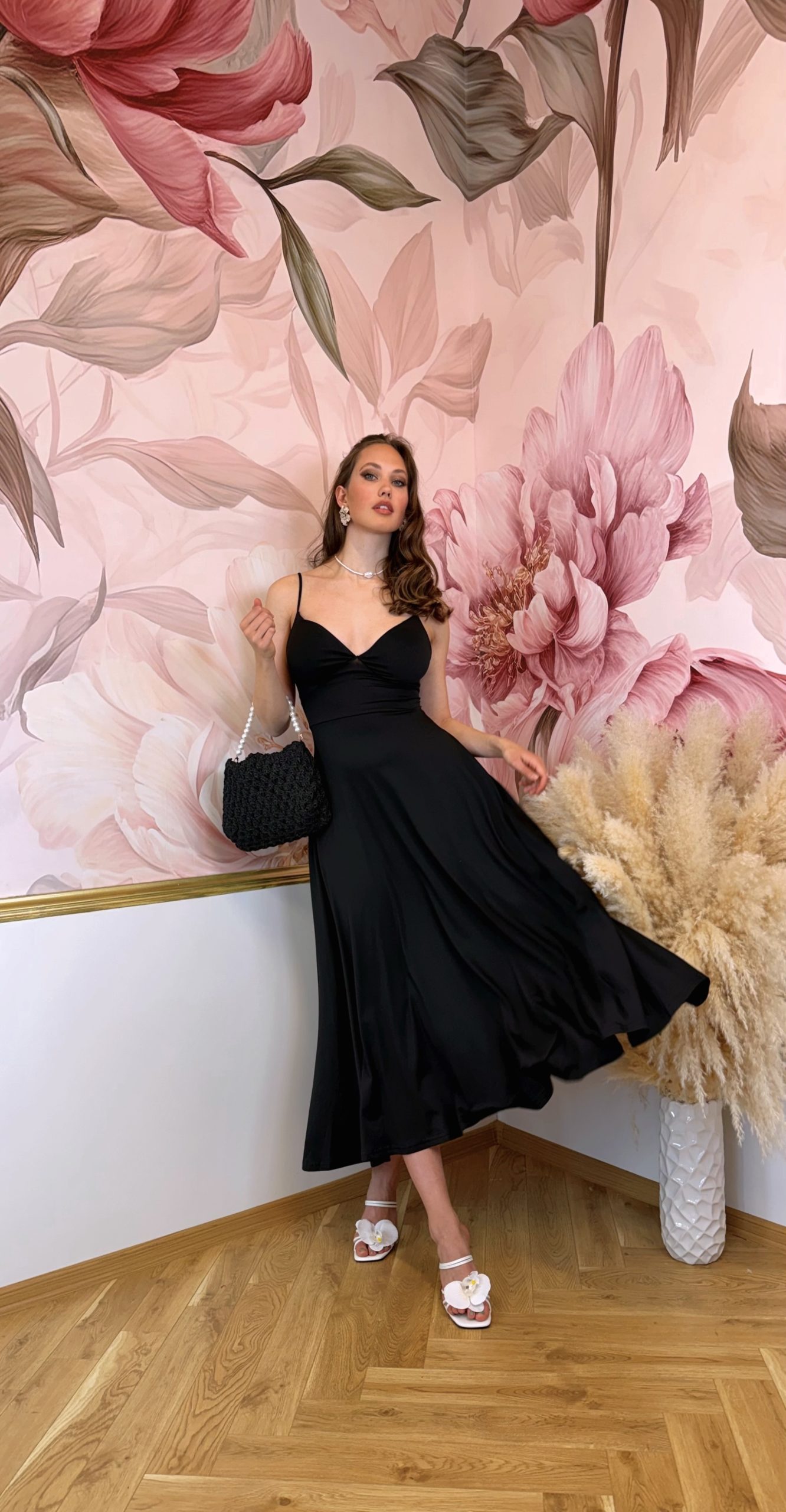 Černé šaty na ramínka s jemně splývavým střihem