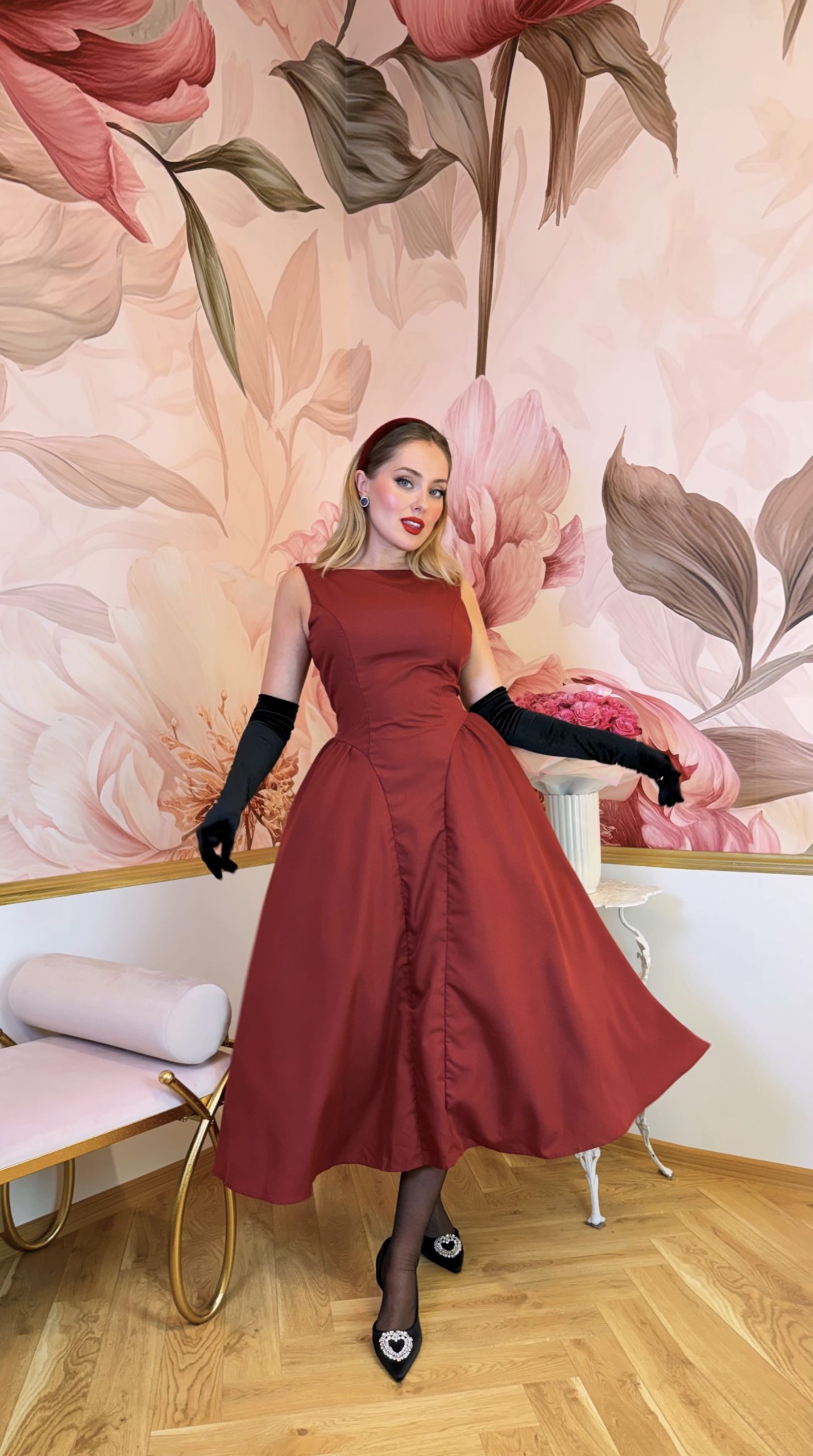 Elegantní vínové šaty s jemným leskem a krásně tvarovaným živůtkem