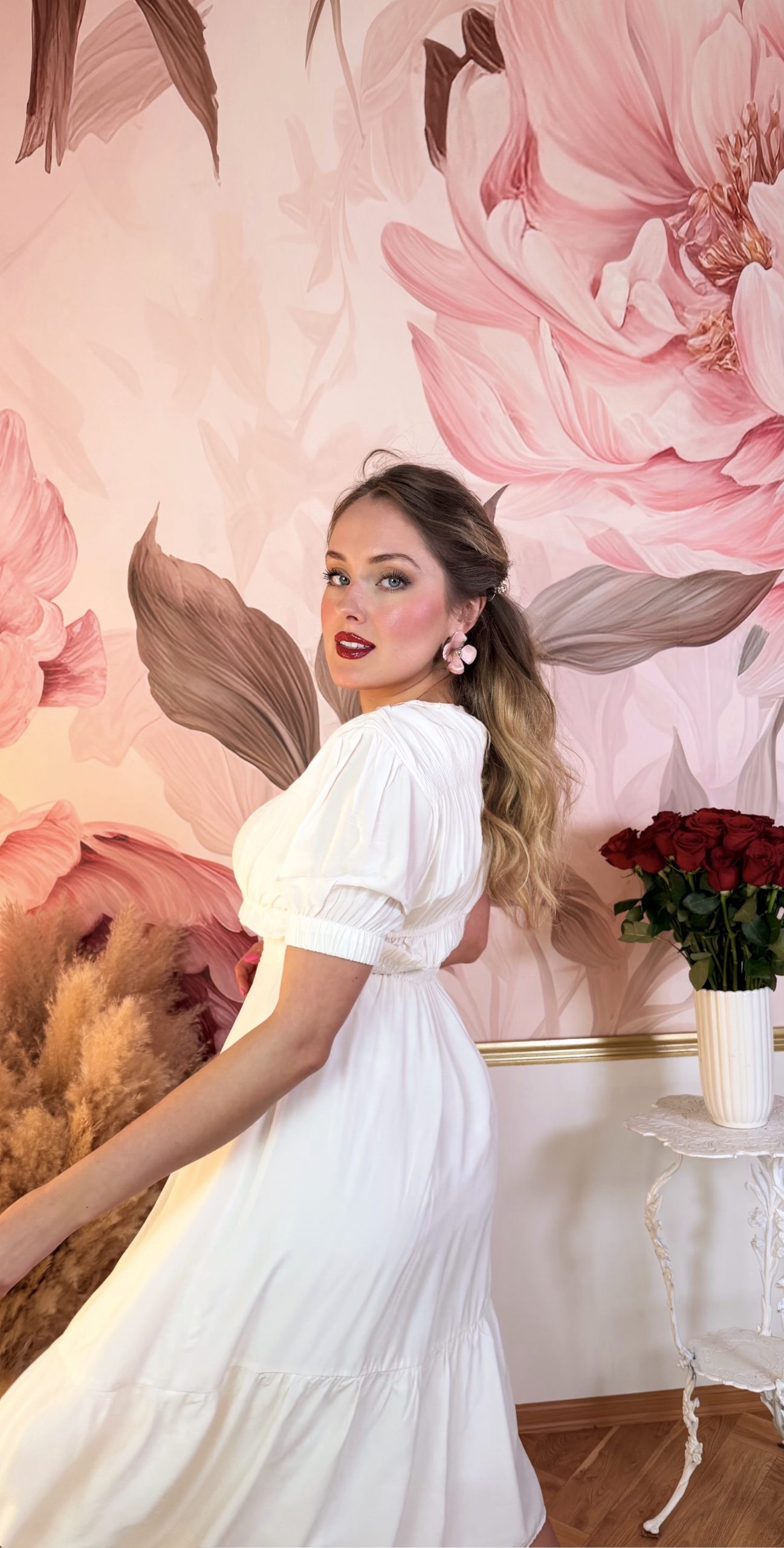 Jemné světlé bavlněné šaty s řasením v pase, na rukávech, na hrudi