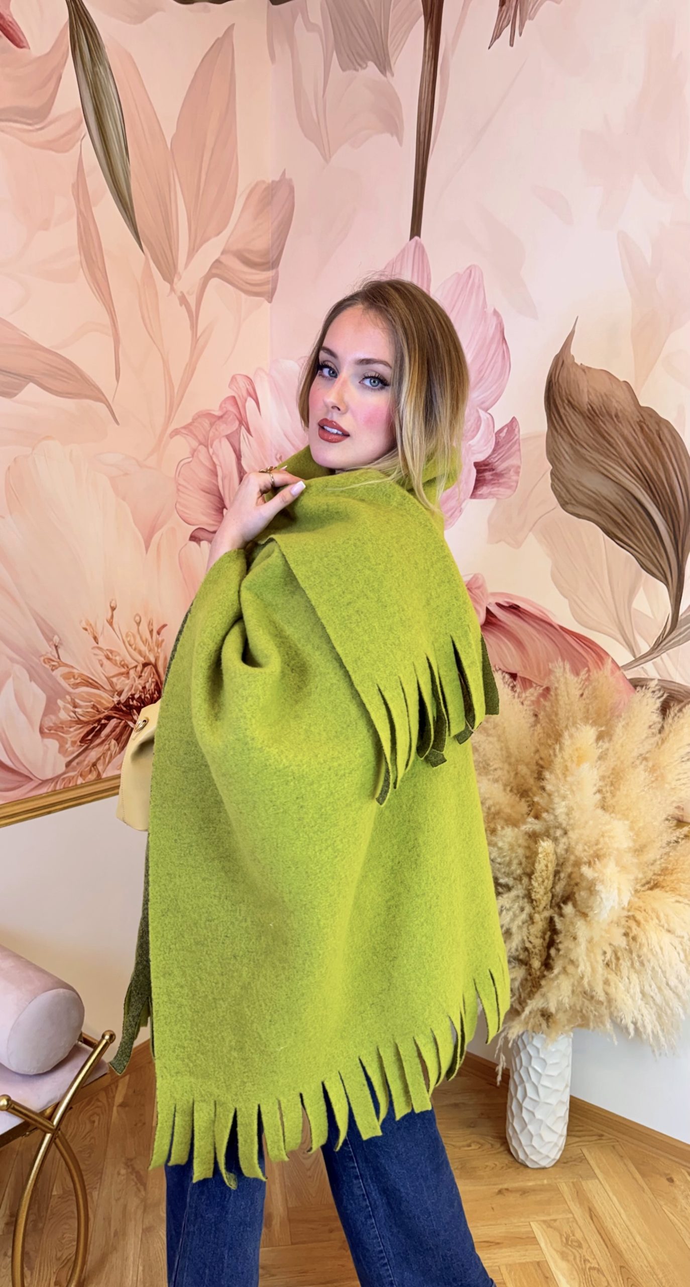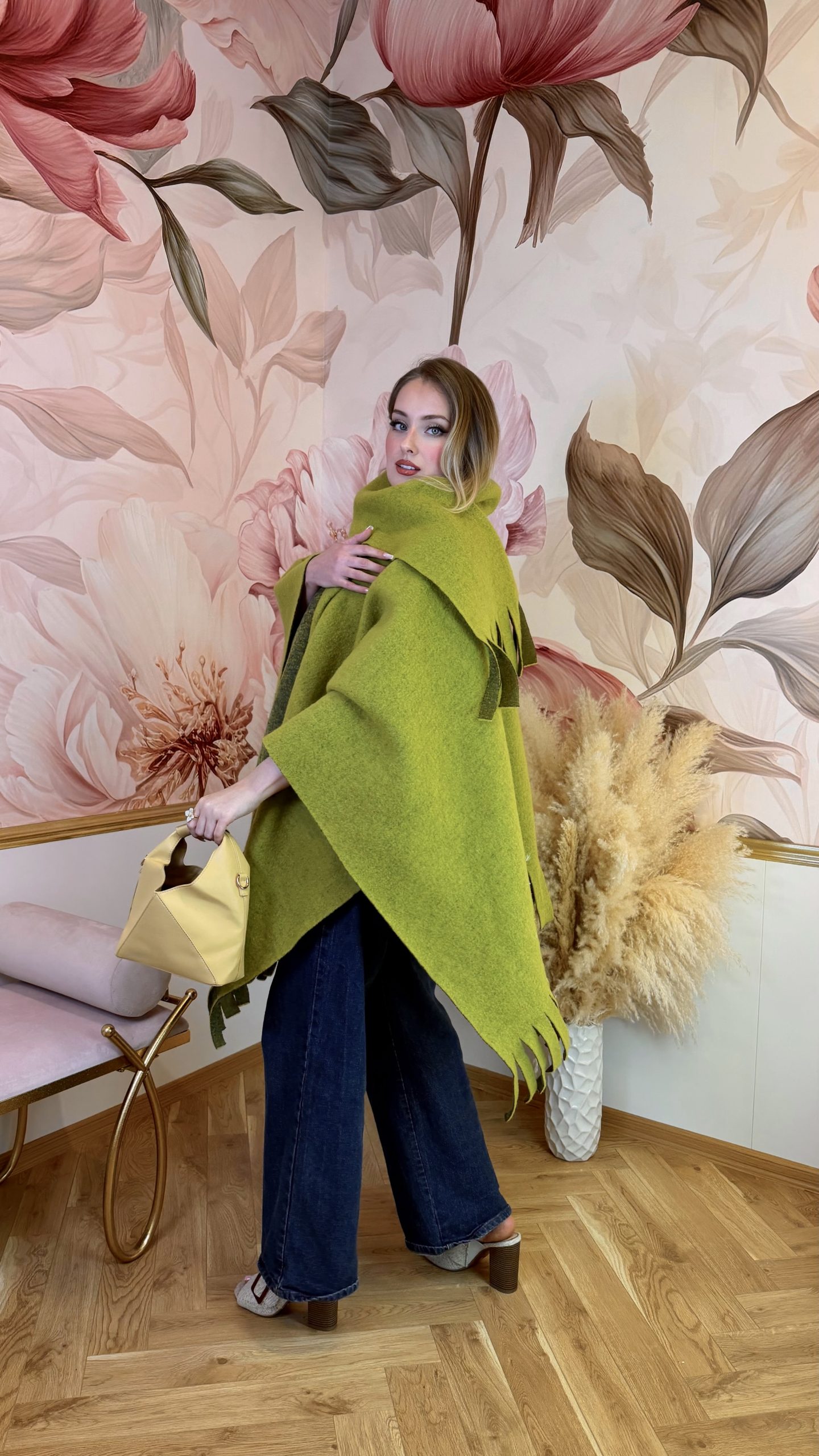 Výrazné 70% vlněné zelené luxusní italské pončo